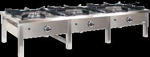 Taborety gazowe e-gaz dużej mocy, trzy stanowiskowe o dwu koronowych palnikach, wszystkie zabezpieczenia o mocy palników19, 21, 23 i 27 kW. Z emaliowanymi rusztami i wyjmowanymi płytami pod palnikowymi. Model TG z zastosowaniem zapalacza piezoelektycznym, lub TPG palnik zapalający na tzw. pilot. Wymiary urządzenia 1690x600x350 Bardzo solidne. |