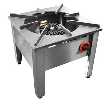 Prosty jedno koronny palnik gazowy KG-110 E-gaz o mocy 4.5 kW, przyłączenie gazu rurowe ½, posiada zawór przeciw wypływowy , oraz funkcję oszczędnego płomienia. Przystosowany do obciążenia wartości 50 kg. Wymiar 325x325x255mm, stal nierdzewna. |