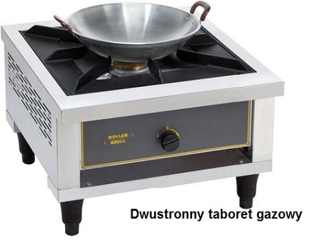 Taboret gazowy o dwustronnym ruszcie , Jedna strona do klasycznego gotowania, druga do użytku woka. |